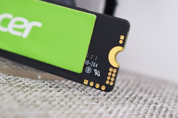 和之前GM系列一样,FA100 1TB使用了黑色雾面PCB设计,其中正面为产品标识贴纸,背面为带ACER LOGO的散热贴,相比常见的固态硬盘PCB而言,FA100 1TB的边角非常圆润,这在M2固态硬盘设备中较为少见的,造型上拥有较高辨识度。